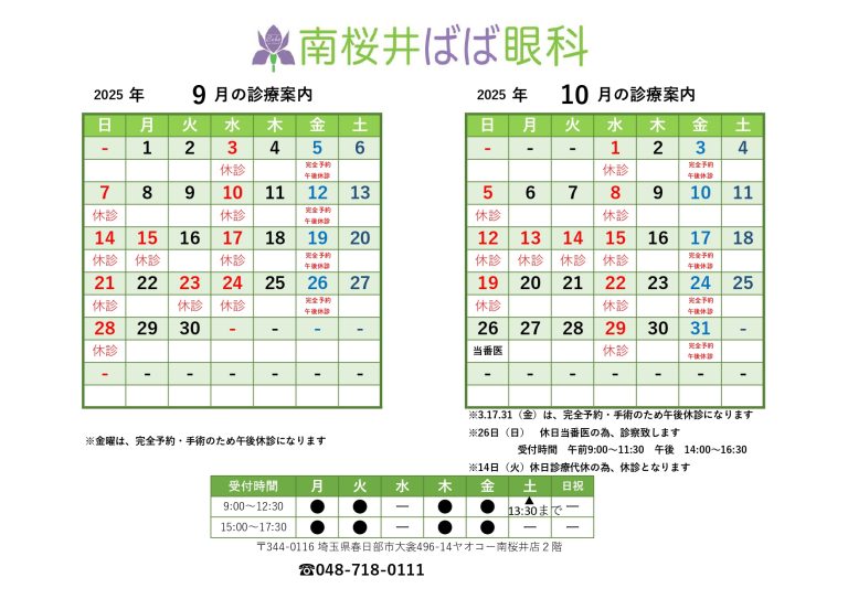 ※9月毎週金曜は、完全予約診療・手術のため午後休診となります。