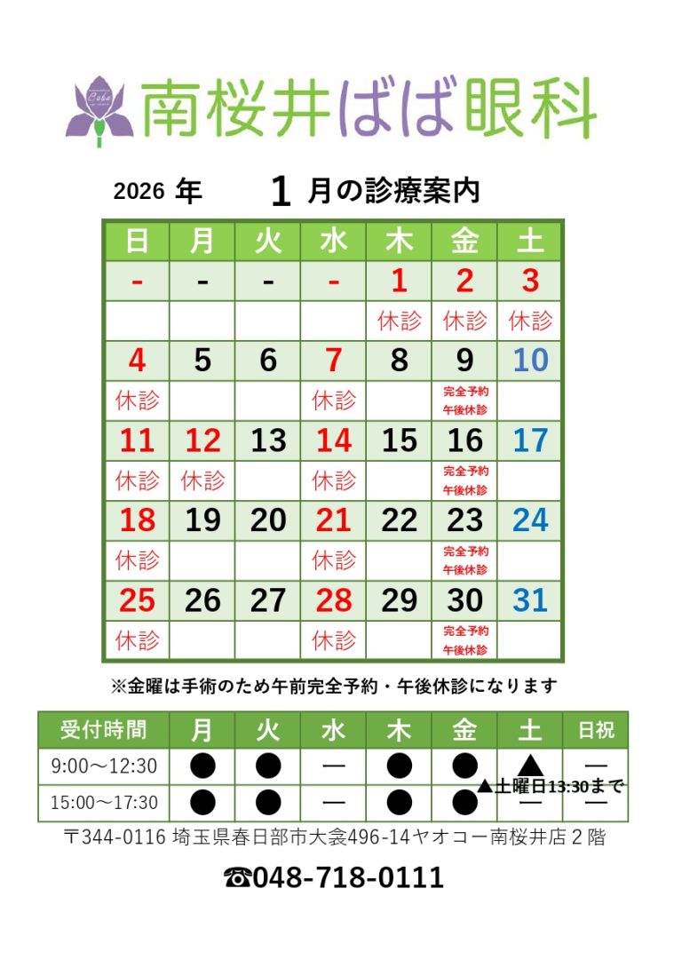 ※1月12日・26(金)は、手術のため午前11:30受付終了 午後休診となります、ご注意ください